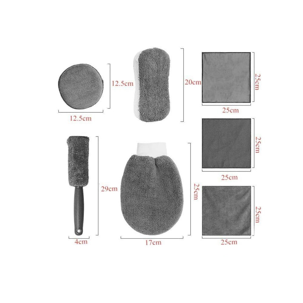 Each tool is specifically designed for different parts of your car, allowing for detailed and efficient cleaning. The kit includes tire brushes, coarse mesh sponges, towels, and more.