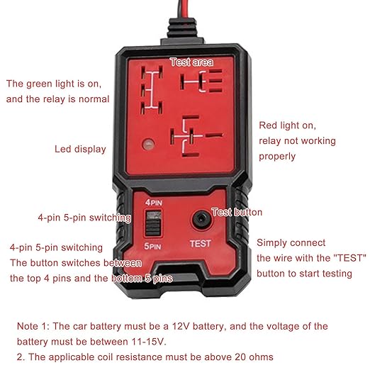 Suitable for testing relays in cars, trucks, motorcycles, boats, and other 12V electrical systems.