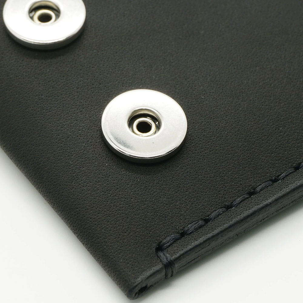 Two powerful magnets securely close the wallet, keeping banknotes and cards safely contained while allowing easy access.