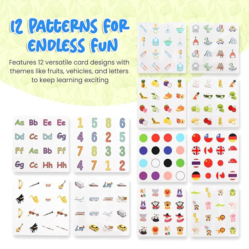 Includes 12 distinct, eye-catching patterns that appeal to children and add visual interest to each game session.