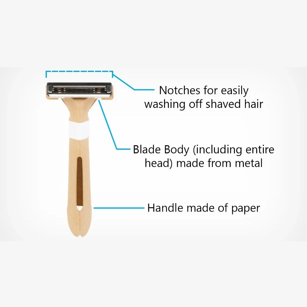 This razor is crafted from paper-based materials, reducing plastic waste by 98%, making it an environmentally conscious choice for those looking to minimize their ecological footprint.