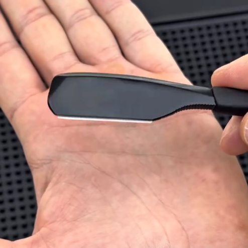 The straight razor features a fast and intuitive blade installation mechanism. Simply pinch the back of the razor to install the blade in seconds—no hassle required. Compatible with single-edge blades.