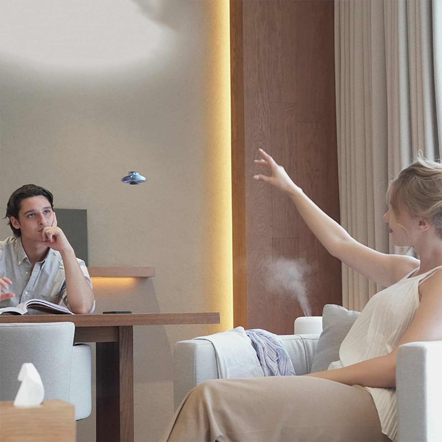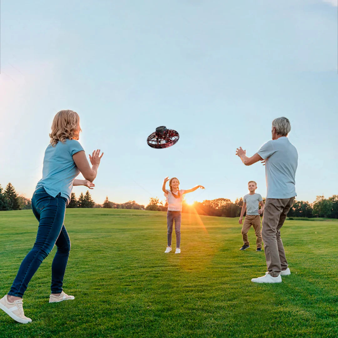 This UFO flying spinner is an easy-to-control drone suitable for players of all ages. Simply power it on, twist the knob to start, and gently toss it to take off. Different throwing speeds and angles allow for various flight paths, stunts, and high-speed maneuvers. With a glowing LED light and safe design, it provides a creative and fun flying experience.